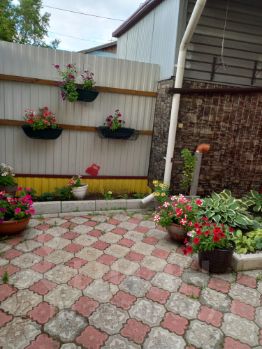 Продам 1/2 дома 3ком.+ кухня, на участке находится гараж из железобетона 4х5, баня, сарай из шлакоблоков, 2 теплицы, погреб, своя скаважина