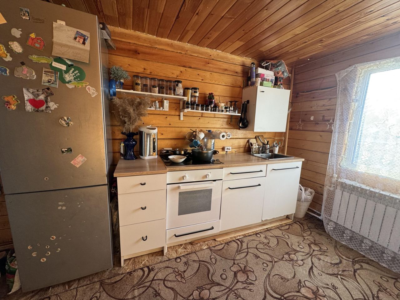 Продам дом из бруса. На первом этаже большая кухня-студия (17кв) + комната 17кв, а так же санузел (туалет и душевая кабина). На втором этаже мансарда спальня. Так же на участке (6соток) имеется большая баня из бруса с большой пристроенной беседкой. Бонусом останется бассейн 11 кубов. В доме останется почти вся мебель и техника. (По договоренности) Отопление твердотопливный котел, плюс электрокотел на 6 к/вт. Вода скважина, проведена по дому. Есть вывод под посудомоечную машину, под раковину в санузле. Бойлер. Электричество круглогодичное. Плюс вода поливочная в летний сезон. Дом в начале общества Авиатор. Дороги зимой чистят. Проживаем круглогодично, есть прописка. Рядом жд станция Сады. Магазин с товарами первой необходимости.
