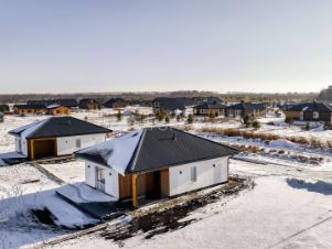 Код объекта: 1780956.В продаже современный , просторный одноэтажный дом площадью 143 кв. метра .В доме располагаются :- 2 уютные и светлые спальни площадью 14.4 и 22.6 кв. метра- Просторная кухня-гостиная 45.6 кв. метра с большими окнами в пол и удобным выходом на солнечную террасу- Комфортабельный санузел площадью 8 кв. метров.- Котельная с выходом в гараж , в гараже кирпичный погребНа участке площадью 12 соток располагается :- Уютная баня из бруса площадью 24 кв. метра, в которую проведены все необходимые коммуникации. Также имеется собственный септик - Практичная хозяйственная постройка- Вольер для вашего питомца- Теплица для выращивания растений- Множество разнообразных посадок, создающих атмосферу уюта и зелени.Коттеджный поселок ''Рябиновый'' находится всего в 25 минутах от площади Калинина• В 3,5 км поселок Светлый с магазинами, школами, детскими садами и медицинскими учреждениями. с КП ходит школьный автобус • На территории поселка: детские площадки и зоны отдыха• Удобные асфальтированные дороги для комфортного передвиженияЭтот дом идеально подходит для комфортной жизни . Не упустите шанс стать его счастливым владельцем , приглашаем на просмотр , звоните !