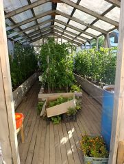 Продам дачу состоящую из двух участков по 12 соток. Оба размежованы. Дача состоит из двухэтажного дома с тремя комнатами, огромной кухни и прихожей. Внутри всё покрыто вагонкой. Баня тоже очень большая, с огромной комнатой отдыха. На участке построены две большие теплицы из бруса 100 мм. На 50% покрытые поликарбонатом. Имеются грядки. Всё сделано для себя. Перед домом высажен участок с газоном. Имеются посадки: клубника, малина, смородина красная и чёрная, жимолость, крыжовник, виноград, яблони, вишни, черешня. Имеется гараж. И огромная парковка как внутри участка так и снаружи. Забор вкруг из 2-х метрового профлиста. Год постройки 2010. Документы все в порядке. Продажа от собственника. Не агентство.