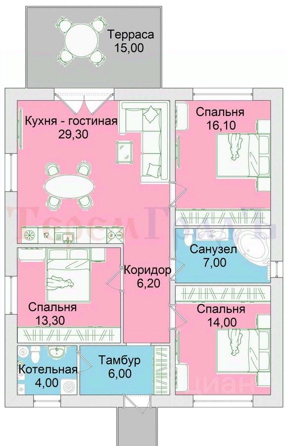 ОТДЕЛ ПРОДАЖ ЗАСТРОЙЩИКА предлагает КОТТЕДЖ ПОСТРОЕН! ЦЕНА с ЗЕМЕЛЬНЫМ УЧАСТКОМ. Находится в c. Каменка в коттеджном поселке ''Каменский Оазис ул. Садовая, 32 (подъезд по асфальту через ул. Каменская).КОМИССИЯ ДЛЯ ПОКУПАТЕЛЯ - 0% !!! ДЛЯ АГЕНТОВ ОСОБЫЕ УСЛОВИЯ !!!Коттедж состоит из кухни-гостиной - 26 кв.м, 3 (трёх) спален - 16, 14 и 11,5 кв.м., и вспомогательных помещений: холла, коридора, санузла и второго малого санузла, включающего в себя котельную. Высота от пола до потолка 3 метра. Все материалы и комплектующие в доме высокого заводского качества!ВАЖНО: мы указываем фактическую площадь дома согласно выписки из ЕГРН ! Коттедж возможно купить ПО СЕМЕЙНОЙ И IT ИПОТЕКЕ!!! ПАРАМЕТРЫ КОНСТРУКТИВА:* Фундамент - ленточный на буронабивных сваях* Цоколь высокий, утепленный, перекрытый заводскими ж/б плитами* Cтены автоклавный газобетон завода ''Сибит'' - 300 мм., с армированием через каждые 3 ряда, утепление - базальтовая плита * Перемычки оконные и дверные завода ''Сибит''* Армопояс выполнен по проекту между стенами и кровлей (распределяет нагрузку) утеплен экструдированным пенополистиролом* Кровля ондулин ''Черепица'', чердачное перекрытие утеплено базальтовой плитой* Вентиляция приточно-вытяжная (есть КиВы), выполнена в кухне-гостиной, с/у, котельной с выходом на кровлю* Окна кашированные, пакет шестикамерный (гарантия 3 года)* Фасад высококачественный облицовочный кирпич* Отмостка бетонная, армированная, утепленная, с щебеночной отсыпкой* Система водостока из металла, смонтирована по карнизам и углам здания* Терраса 15 кв.м. с выходом из гостиной.* Крыльцо деревянное, под ним-бетонированная площадка* Входная дверь стальная, утепленная, с терморазрывомКОММУНИКАЦИИ:* Отопление: двухконтурный газовый котел Naven с системой радиаторов, система теплого пола* Электричество: монтаж проводки выполнен по проекту, установлены автоматы, счетчик, розетки, выключатели, смонтировано заземление* Водоснабжение: ввод в дом, разводка труб до санфаянса, горячая вода от газового котла* Канализация: автономная - септик 5 куб., монтаж труб внутри домаВНУТРЕННЯЯ ОТДЕЛКА:* Пол: полусухая механизированная стяжка по маякам, прихожая, котельная, кухня-гостинная - керамогранит, в комнатах - кварц-винил* Потолок:натяжной со встроенными светильниками, закладными для люстр и гардин* Стены:финишная шпатлевка по маякам под покраску* С/У: стены - кафель, пол - керамогранит, подвесной унитаз с инсталляцией ИНФРАСТРУКТУРА:Остановка общественного транспорта в пешей доступности. Магазин ''Пятерочка'', школа 44, детский сад 509. На территории поселка оборудованы детский игровой комплекс (от 0 до 8 лет), силовой Workout (воркаут) для любого возраста, футбольное поле и волейбольная площадка. Интернет — Электронный город или Сибирский медведь. Еще одно преимущество — это озеро Каменка, находящееся в 2 км от поселка. Гарантия - 5 лет.