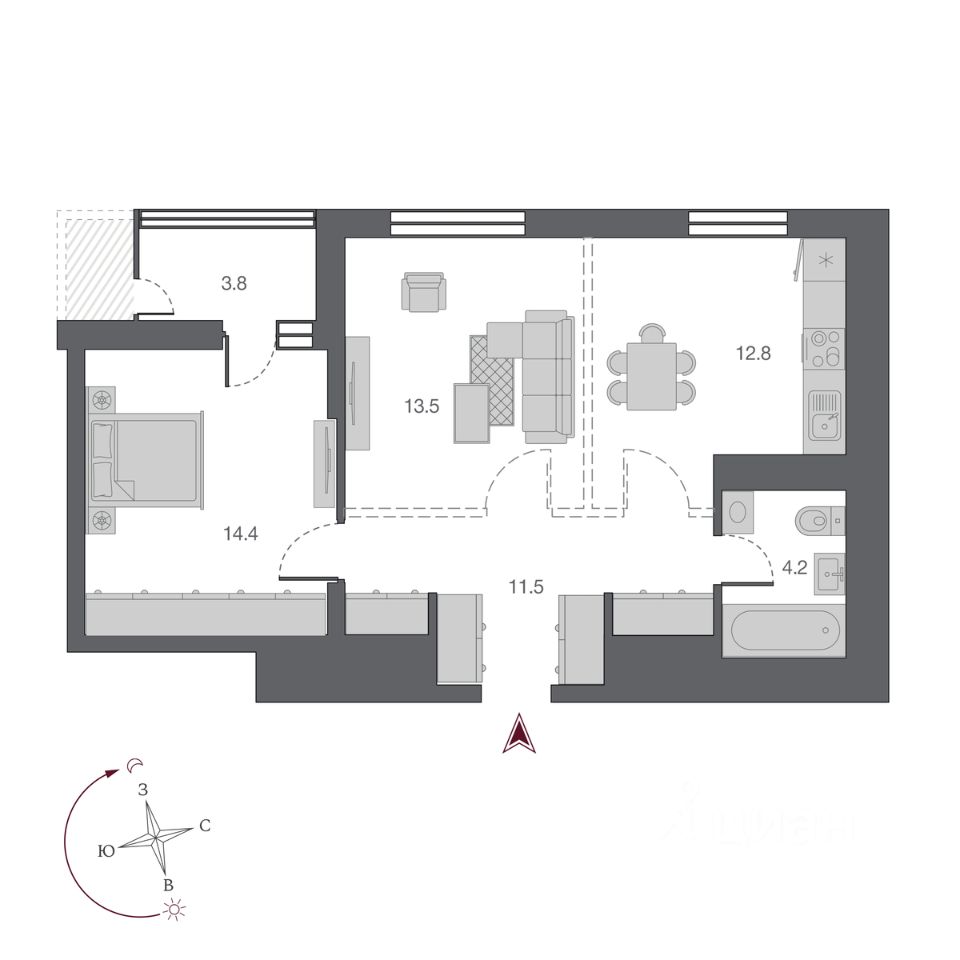 Идеальное зонирование для комфортной жизни семьи Кухня-гостиная с выходом на лоджию — место для общения, отдыха и вечеров в кругу семьи Просторная прихожая дарит ощущение лёгкости и организованности. Продуманные зоны для хранения вещей позволяют поддерживать порядок без усилий Окна на две стороны обеспечат солнечный свет в течение всего дня Мастер-спальня с собственной зоной гардероба и ванной — уединённая зона комфорта. В комнате предусмотрено место под систему хранения и личный санузел с возможностью установки душевой кабины — комбинация, создающая атмосферу уюта и свободы Вторая спальня - с местом для хранения и ТВ-зоной Детская комната с удобными местами для хранения. Здесь достаточно пространство для сна, учёбы и игр Основной санузел с ванной и местом под стиральную машину идеально подойдёт для всей семьи Два экстра-балкона с выходом из кухни и спальни — возможность быть наедине с природой и самим собой