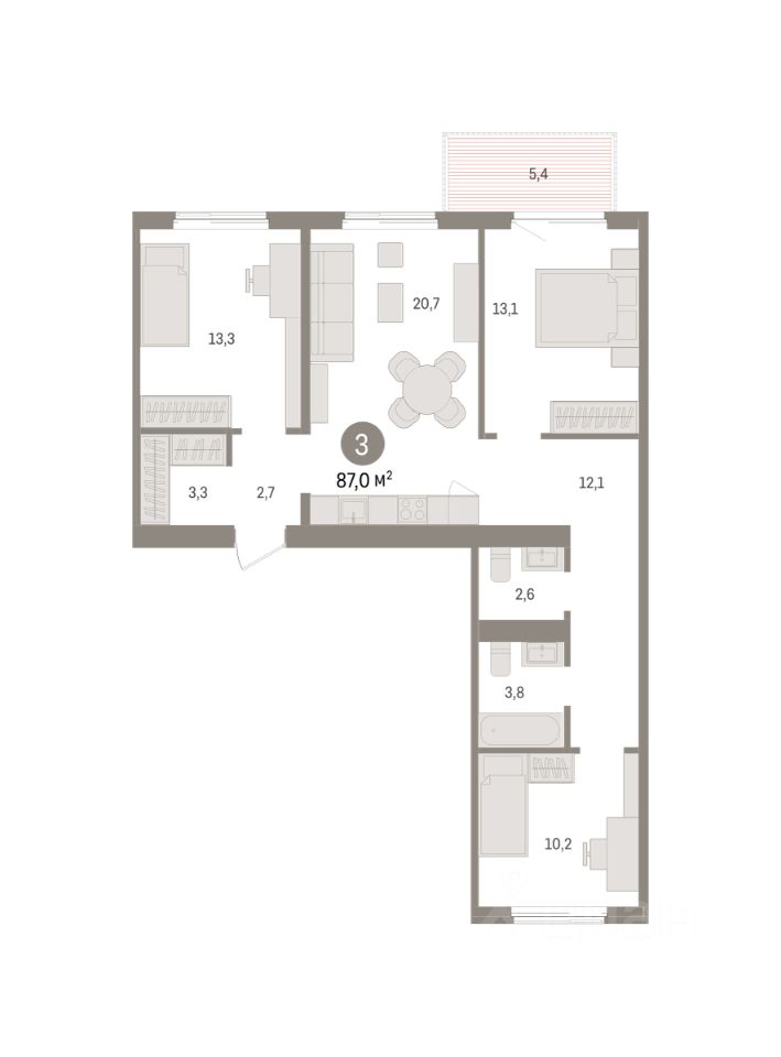 Продается трехкомнатная квартира от застройщика с предчистовой отделкой в ЖК ''Пшеница'' на 4 этаже. Общая площадь: 87.04 кв.м., жилая: 36.6 кв.м., площадь просторной кухни-гостиной: 20.7 кв.м. Квартира - распашонка, без проходных комнат, окна выходят на paзные стороны дома. В квартире один балкон, один совмещенный и один раздельный санузел. Высота потолков 2.82 м. Дом монолитный, многоподъездный, переменной этажности, от 7 до 8 этажей. Квартира находится в 4-й секции высотой 7 этажей в корпусе 5-2. На этаже 4 квартиры. В подъезде 1 пассажирский и 1 грузовой лифт. Окончание строительства - 4 квартал 2027 года. Оформление сделки по договору долевого участия. Квартира с кухней-гостиной и тремя спальнями в жилом районе ''Пшеница''. Особенности планировки: балкон, вид во двор, гардеробная, мастер-спальня, окна на две стороны, предчистовая отделка, разнесённые спальни. квартиры в нашей базе: ПШЦ05.2-Ж4.4.3. ''Пшеница'' расположена в третьем микрорайоне посёлка Краснообск, на пересечении улицы Центральная и Советского шоссе. Посёлок был создан в 1970 году. Архитекторы создали в Краснообске все условия для научной деятельности, быта, культурного развития, отдыха и поддержания здоровья жителей. Но их проект так и не был полностью реализован. Сегодня рядом с проектом ''Пшеница'' расположены остановки транспорта, выезды на транспортные магистрали. До Бугринского моста — 15 минут на автомобиле. До станции метро ''Площадь Маркса'' — 35 минут на автобусе, 20 минут на автомобиле. В 1520 минутах от жилого района расположен крупный ТРЦ ''Мега''. Внутри посёлка сформирована необходимая инфраструктура: лицей, школы, детские сады, больница, поликлиника, частные медицинские центры, магазины, спортивные клубы. Рядом находится лесопарк им. академика Синягина. Район ''Пшеница'' — это квартальная среднеэтажная застройка с закрытыми от машин безопасными дворами. В основу проекта мы заложили три принципа. Первый — разнообразие и плотность. Для нас важно создать среду, где человек в шаговой доступности мог бы получить любой сервис. Второй принцип — сохранение истории места, уважение к идеям первых архитекторов ВАСХНИЛа и локальной идентичности. Достопримечательностью района станет круговой бульвар. Третий принцип — связанность. Район постепенно станет единым целым за счет организации плотной сети вело- и пешеходных маршрутов, формирования разнородных общественных пространств. Если Вы - риелтор, пожалуйста, за более подробной информацией обратитесь на горячую линию на нашем официальном сайте. #Z6Vbdb