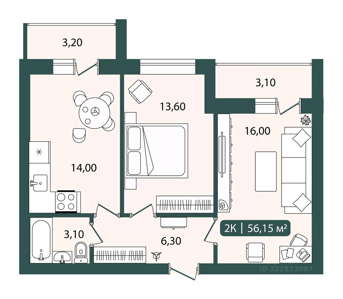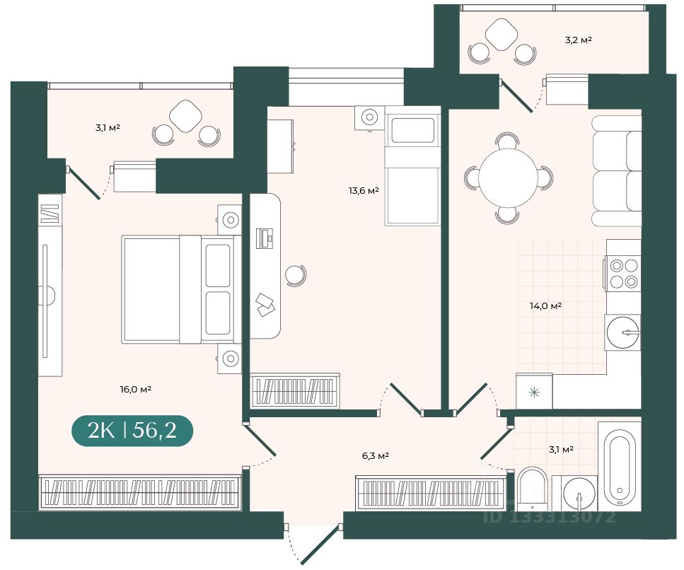 56 м² · Этаж 7 из 9