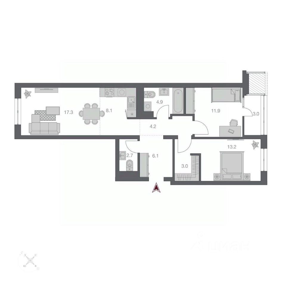 58 м² · Этаж 6 из 17