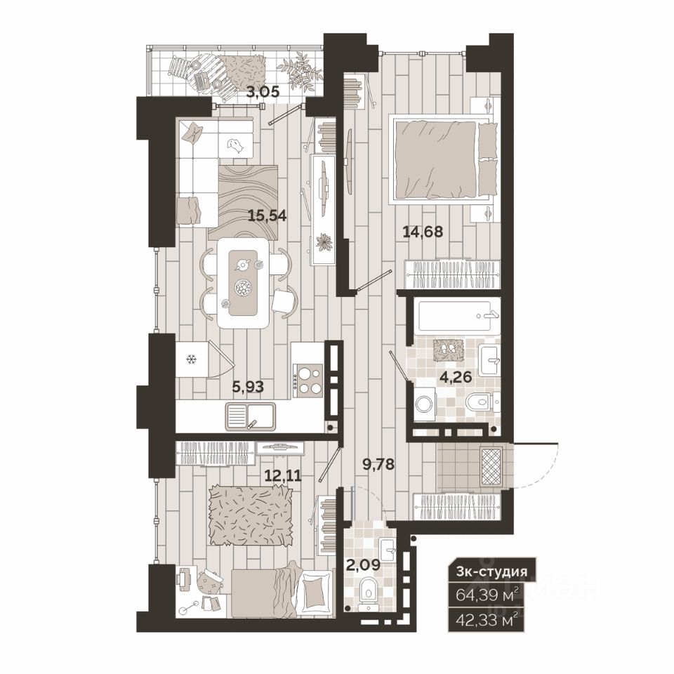 59 м² · Этаж 2 из 24