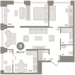 Продается двухкомнатная квартира с предчистовой отделкой в Квартал Мылзавод на 6 этаже. Общая площадь: 86.24 кв.м., жилая: 32.2 кв.м., площадь просторной кухни-гостиной: 37.8 кв.м. Квартира угловая, окна oбecпeчивaют paвнoмepнoe ocвeщeниe в тeчeниe дня. В квартире одна лоджия, один совмещенный и один раздельный санузел. Высота потолков 2.72 м. Квартира находится в корпусе 9. Дом монолитный, одноподъездный, высотой 30 этажей. На этаже 9 квартир. В подъезде 1 пассажирский и 3 грузовых лифта. Окончание строительства - 1 квартал 2027 года. Оформление сделки по договору долевого участия. Квартира с кухней-гостиной и двумя спальнями в квартале ''Мылзавод''. Особенности планировки: предчистовая отделка, тёплая лоджия. квартиры в нашей базе: МЛ-ГП4.2-9-9.6.6. Квартал ''Мылзавод'' расположен в границах улиц Некрасова, Каменская, Писарева и Семьи Шамшиных. Во времена НЭПа на этом месте появилось промышленное предприятие, выпускавшее более тридцати видов мыла. Его продукция славилась высоким качеством и шла на экспорт. Восемь лет назад городские власти решили перенести все заводы из центральной части Новосибирска и отдали этот участок под жилую застройку. Ревитализация промышленных территорий — обычная для европейских городов практика. Она дает возможность насытить старые, неиспользуемые территории новыми востребованными функциями и таким образом ''вернуть'' городу утраченные пространства. Сегодня вокруг квартала уже сформирована транспортная и социальная инфраструктура. Жители ''Мылзавода'' смогут быстро добраться до главных достопримечательностей города — театра оперы и балета, ''Глобуса'' и краеведческого музея. В шаговой доступности расположены автобусные остановки, две станции метро, четыре школы, а также один из самых больших торговых центров города — ''Галерея''. Квартал состоит из двух 9-этажных урбан-вилл, четырех 17-этажных и трех 30-этажных башен, объединенных стилобатом. В основу концепции ''Мылзавода'', которую Брусника разрабатывала совместно с голландскими и немецкими архитекторами, лег принцип mixed-use . Он предполагает совмещение в пределах одной локации жилого, рабочего, коммерческого и культурно-развлекательного пространств. На первых этажах домов разместятся продуктовые магазины, кафе, офисы, а также частный детский сад на 100 мест. Если Вы - риелтор, пожалуйста, за более подробной информацией обратитесь на горячую линию на нашем официальном сайте. #Z5teZT