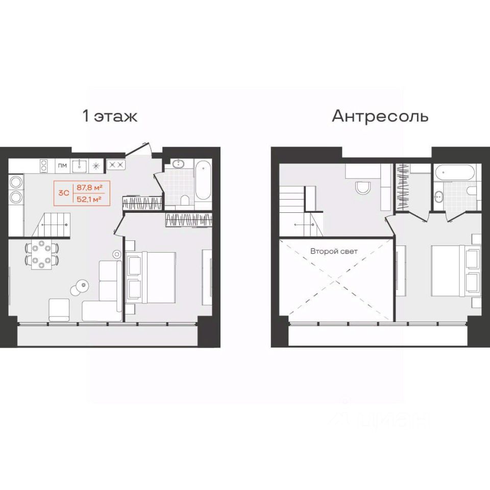 52 м² · Этаж 18 из 18