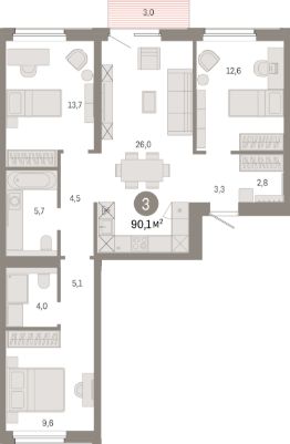 Продаётся 3-комнатная квартира в строящемся доме (Дом 1), срок сдачи: IV-кв. 2028, общей площадью 90.1 кв.м., на 3 этаже. Новый жилой комплекс ''Город-на-озере'' от застройщика ''Брусника'' расположен в Дзержинском районе Новосибирска в границах ул. Ипподромской, ул. Фрунзе, Журинского спуска.