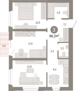 Продаётся 2-комнатная квартира в строящемся доме (Дом 2.1), срок сдачи: III-кв. 2026, общей площадью 64.6 кв.м., на 3 этаже. РайонТретье кольцо ВАСХНИЛаНовый жилой район расположен в поселке Краснообск на левом берегу Оби, на пересечении улицы Центральная и Советского шоссе. Рядом — остановки транспорта, выезды на транспортные магистрали. До Бугринского моста — 15 минут на автомобиле. До станции метро ''Площадь Маркса'' — 35 минут на автобусе, 20 минут на автомобиле. В 15-20 минутах от жилого района расположен крупный ТРЦ ''Мега''. Внутри посёлка сформирована необходимая инфраструктура: лицей, школы, детские сады, больница, поликлиника, частные медицинские центры, магазины, спортивные клубы. Рядом находится лесопарк имени академика Синягина и Обское водохранилище.ПроектКвартальная застройка''Пшеница'' представляет собой крупный жилой район на месте ''третьего кольца'' ВАСХНИЛа. Это квартальная застройка домами невысокой этажности 4-6 и 7-9 этажей, с закрытыми от машин безопасными дворами, спортивными площадками и детскими зонами. Достопримечательность района круговой зелёный бульвар, который объединит жилые дома с камерными дворами, пешеходными и велосипедными маршрутами, прилегающим лесопарком. На первых этажах домов расположены коммерческие помещения с повседневными сервисами для жителей.ДомЕвропейская архитектураПервая очередь строительства состоит из двух секционных домов г-образной формы 7-9 этажей, которые образуют квартал. Фасады облицованы керамическим кирпичом и архитектурным бетоном. Первые этажи высокие и оформлены прозрачным панорамным остеклением со стороны улицы. Контрастное горизонтальное разделение объёма зданий цветом и фактурами придаёт им человеческий масштаб. Дома не выглядят монолитными и тяжеловесными. Открытые балконы, прогулочные террасы и террасы на первых и последних этажах задают динамику фасада. Элементы озеленения на кровле оживляют его и делают сопричастным окружающему ландшафту.БульварЗелёный кольцевой паркКруговой бульвар связывает район, объединяя жильё с природным ландшафтом, зонами активности и отдыха, пешеходными и велосипедными маршрутами. Парковое пространство отделяет застройку от существующих участков леса. Бульвар встраивается в смежные пространства лесопарка, камерные сады дворов, зелёные аллеи и тротуары. Он имеет три уровня: деревья, кустарники и травы, и видоизменяется в дизайне. Вдоль зелёного кольца проходит велодорожка: она понижается, проходя через дворы и повышается в местах пересечения с дорогой.ДворКамерный двор-садЗелёныи двор устроен как полуприватное пространство, безопасное для игр детеи и комфортное для отдыха взрослых. Живая изгородь окружает двор, формируя теневые ниши, и используется в качестве границы частных палисадников и коммерческих сервисов. Во дворах расположены детские площадки, беседки-перголы и скамейки. Зоны активности и спорта вынесены в общественные пространства района.