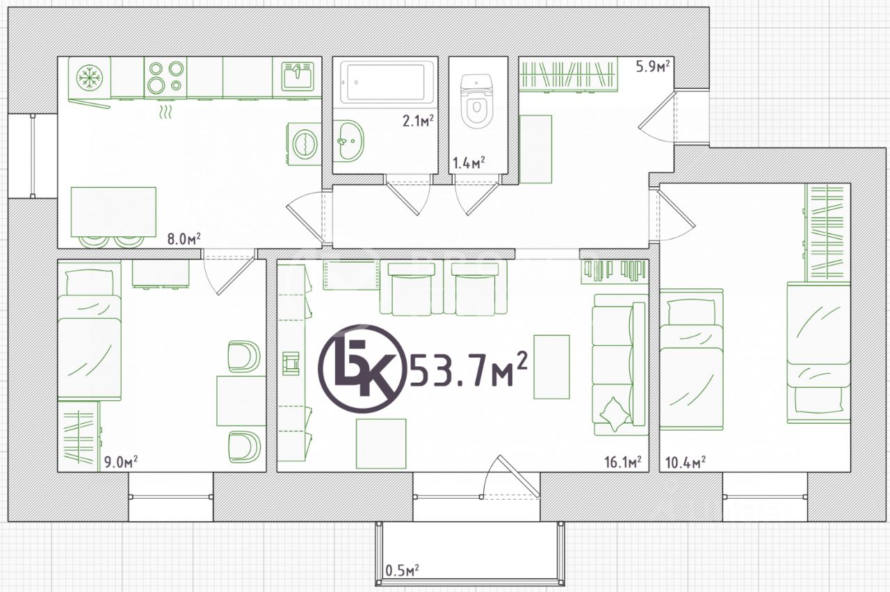 54 м² · Этаж 5 из 9