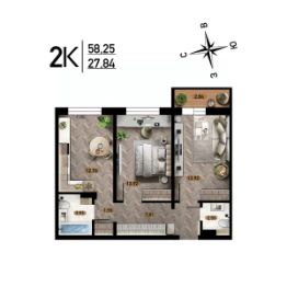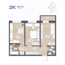 Продаётся 2-комнатная квартира в сданном доме (Дом 10), срок сдачи: IV-кв. 2025, общей площадью 58.04 кв.м., на 3 этаже. Расположение, транспортная доступность Жилой комплекс ''Радуга Сибири'', занимающий территорию 10,4 га, расположен на берегу озера, в Ленинском районе Новосибирска. Это экологически благоприятный регион на левом берегу Оби. В двадцати минутах пешком находится железнодорожная платформа пригородного направления ''Ипподром''. Электричка доезжает до центра Новосибирска за 25 минут. От комплекса организовано движение маршрутного такси 12, на котором можно доехать до центра Левобережья (метро ''Площадь Маркса'') и главного железнодорожного вокзала Новосибирска. Путь на автомобиле до площади Маркса или международного аэропорта займет пятнадцать минут, до центра Новосибирска - двадцать минут. Район развивается: по соседству с ''Радугой Сибири'' построен жилой микрорайон ''Чистая Слобода'', планируется расширение Порт-Артурской улицы, продление улицы Титова. В 2016 году было запущено движение скоростного трамвая. Инфраструктура В цокольных этажах домов находятся коммерческие помещения. Вблизи комплекса ''Радуга Сибири'' расположены два детских сада, строится школа, планируется открытие поликлиники. За двадцать минут можно дойти до общеобразовательной школы 86 - в ней был построен спортивный зал и сделан ремонт в 2015 году. В пешей доступности находятся: Дворец культуры ''Сибтекстильмаш'' с кружками и секциями, Троице-Владимирский собор и Новосибирский ипподром. Вблизи ЖК много зеленых насаждений, пешком можно дойти до парка и сквера. На расстоянии 3 км от комплекса расположены МНТК ''Хирургия глаза'' им. С.Н Федорова, плавательный бассейн и спорткомплекс ''Заря'' со стадионом, зимним катком, футбольными и хоккейными площадками. Надежность застройщика Проект комплексной застройки ''Радуга Сибири'' реализует ООО ''Развитие'', которое создано в 2012 году и входит в состав промышленно-строительного концерна ''Сибирь''. Концерн работает с 1990 года, среди завершенных объектов - жилые комплексы ''На Рябиновой'', ''Нарымская Жемчужина'', ''Тулинское'', ''Березовое''. В 2012 году компания заняла первое место среди застройщиков Новосибирска по объемам ввода жилья. Градостроительный план ЖК ''Радуга Сибири'' был разработан в 2015 году, в июле этого же года выдано разрешение на строительство. Архитектура Жилой комплекс ''Радуга Сибири'' - это восемь монолитных 17-этажных домов. Здания возводятся по традиционной монолитной технологии: перекрестно-стеновая система с несущими монолитными продольными и поперечными внутренними стенами, объединенными железобетонными перекрытиями. При строительстве применяется тоннельная опалубка Teknik-L. Квартиры сдаются с предчистовой отделкой, качественными деревянными стеклопакетами, улучшенной шумоизоляцией. Стены выровнены и оштукатурены, полы выровнены. В квартирах выполняется разводка электричества и вертикальная разводка системы отопления, подводятся трубы холодной и горячей воды, канализации, устанавливаются счетчики на электроэнергию