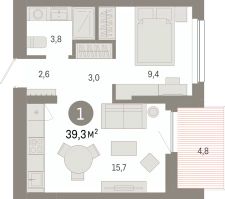 1-комн. квартира от застройщика с предчистовой отделкой в ЖК ''Лебедевский'' на 4 этаже. Общая площадь: 42.9 кв.м., жилая: 9.4 кв.м., площадь просторной кухни-гостиной: 21.1 кв.м. Все окна выходят на одну сторону. В квартире один балкон, один совмещенный санузел. Высота потолков 2.82 м. Дом монолитный, многоподъездный, переменной этажности, от 9 до 12 этажей. Квартира находится в 6-й секции высотой 9 этажей в корпусе 1. На этаже 10 квартир. В подъезде 1 пассажирский и 1 грузовой лифт. Окончание строительства - 2 квартал 2028 года. Оформление сделки по договору долевого участия. Квартира с кухней-гостиной и одной спальней в квартале ''Лебедевский''. Особенности планировки: балкон, гардеробная, предчистовая отделка. квартиры в нашей базе: ЛБД01.1-Ж6.4.1. ''Лебедевский'' находится в Заельцовском районе, между улицами Лебедевского и Георгия Колонды. Рядом расположены остановки наземного транспорта. До станций метро ''Заельцовская'' и ''Площадь Калинина'' — 10-15 минут на автомобиле. По улице Георгия Колонды можно доехать на Мочищенское шоссе, улицы Жуковского и Красного проспекта, а оттуда — в любую точку города.''Лебедевский'' состоит из башен и закрытых домов-кварталов высотой от 8 до 17 этажей. Благодаря переменной высотности зданий, архитектура квартала получилась разнообразной, а дворы домов — светлыми. В основе проекта — органичное соседство жилья с природой. ''Лебедевский'' граничит с лесопарковой зоной. Также мы предусмотрели здесь игровые зоны, площадки для тренировок, прогулочные дорожки, отдельно стоящий паркинг со спортивным комплексом и подземные парковки. Камерные дворы предназначены для отдыха жителей и закрыты для других горожан. Они приподняты над уровнем земли, а доступ автомобилей на их территорию ограничен. Во дворах появится до 40 видов растений. Мы подберём их так, чтобы в каждое время года двор имел свой цвет. Деревья высадим сразу взрослыми, со сформированной кроной. Зелень будет даже зимой — благодаря хвойным растениям. Детские площадки мы сделаем максимально абстрактными — чтобы вдохновлять детей на творчество, а не диктовать им сценарии игры. Разместим игровое оборудование только из натуральных материалов. Архитектурная выразительность фасадов достигается за счёт практичных и в то же время эстетичных решений. Большие окна помогают наполнить комнаты естественным светом. Летние помещения в каждой квартире служат дополнительным пространством для уединения. Также здесь можно установить кондиционер. На верхних этажах спроектированы террасы, которые формируют архитектурный облик зданий. На первых этажах домов будут работать магазины и полезные сервисы. Если Вы - риелтор, пожалуйста, за более подробной информацией обратитесь на горячую линию на нашем официальном сайте. #ZSb9e6