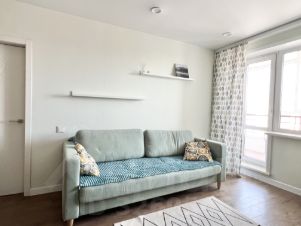 Продаётся просторная, тёплая, светлая 1-комнатная квартира 40.9 кв.м + 11 кв.м утепленная лоджия в красивом микрорайоне ''Родники''.Особенности квартиры:просторные помещения, не стандартная и функциональная планировка, что редкость для 1-к.квартир (лоджия - 11,0 , коридор -7, 4, кухня -11, 7, жилая комната -17, 9) Главный плюс этой квартиры - остекленная лоджия, утеплена, окна выходят на восток, на тихий двор, пол с подогревом, площадь 11 кв. м ( не входит в общую ),что позволяет устроить там спальную зону для взрослого или для ребёнка, а можно рабочий кабинет или гостинную для отдыха, с зимним садом. Таким образом у вас получается ПЛЮС ЕЩЁ ОДНА изолированная комната. Подробное описание. - Просторный коридор - 7.4 кв.м, дорогая, красивая, надежная входная дверь.- Гостинная - комната - 17,4 кв. м, тёплая, окна на солнечную сторону , тихий двор, с красивым озеленением. - Кухня просторная 11,7 кв. м, не длинная как пенал, а квадратная, уютный уголок с мягким диваном и обеденным столом, большой кухонный гарнитур из натурального дерева, каменная мойка, варочная панель, духовой шкаф, вытяжка, стиральная машинка, холодильник. Всё остаётся новым хозяевам. Из кухни широкий выход на утепленную лоджию, что добавляет пространства в кухне. - Санузел совмещён 4,4 кв. м, отделан красивой плиткой, пол с подогревом.Ремонт во всей квартире выполнен качественный, из дорогих материалов, вся мебель, бытовая техника остаётся в квартире, что позволяет сразу заселиться и наслаждаться новым жильём. Во дворе две детские площадки, парковочных мест достаточно, шлагбаумы. Развитая инфраструктура с множеством общественного транспорта, 3 новые современные школы, несколько детских садов, взрослая и детская поликлиника, различные медицинские учреждения, много магазинов и торговых центров, фитнес клубы, всё в шаговой доступности.Приходите на просмотр, это же бесплатно и вы влюбитесь в это жильё с первого взгляда. Квартира без использования мат. капитала, долгов, обременений, продаётся собственником, просьба риелторам звонить только если есть покупатель на эту квартиру.
