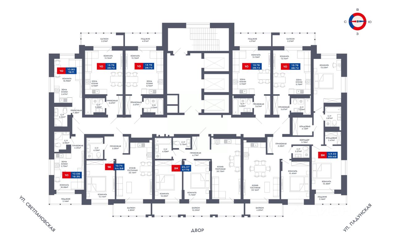 44 м² · Этаж 19 из 25