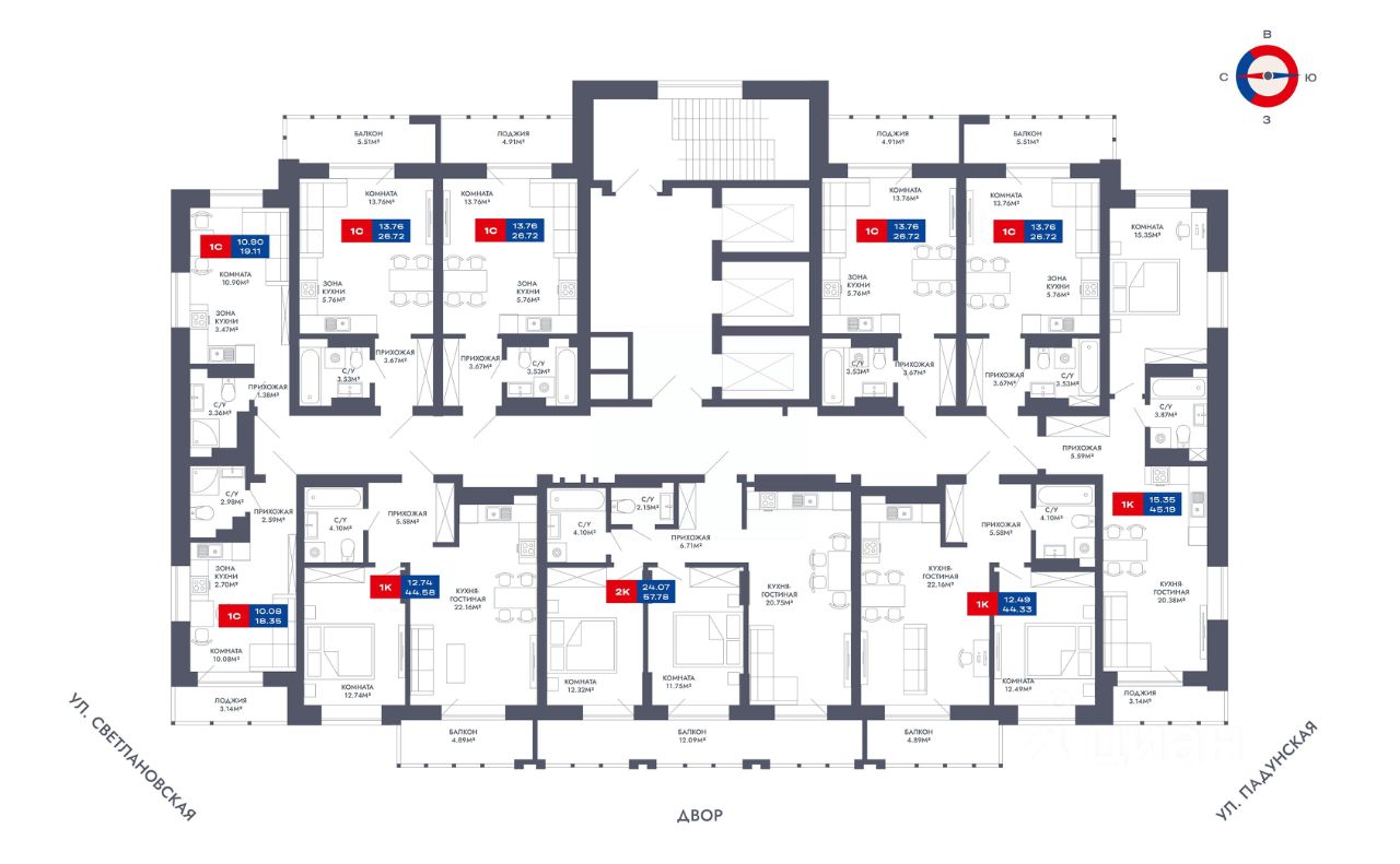 45 м² · Этаж 18 из 25