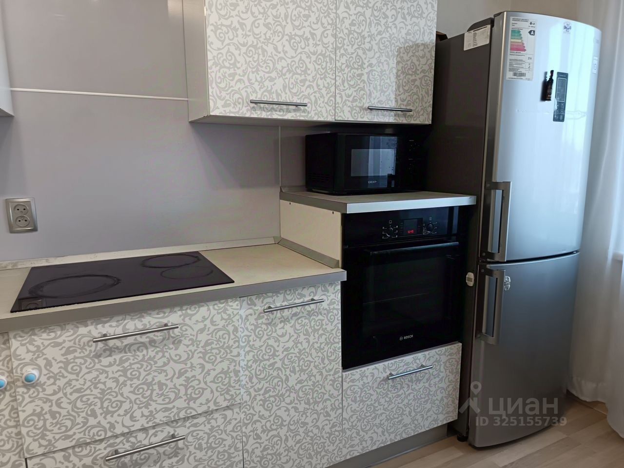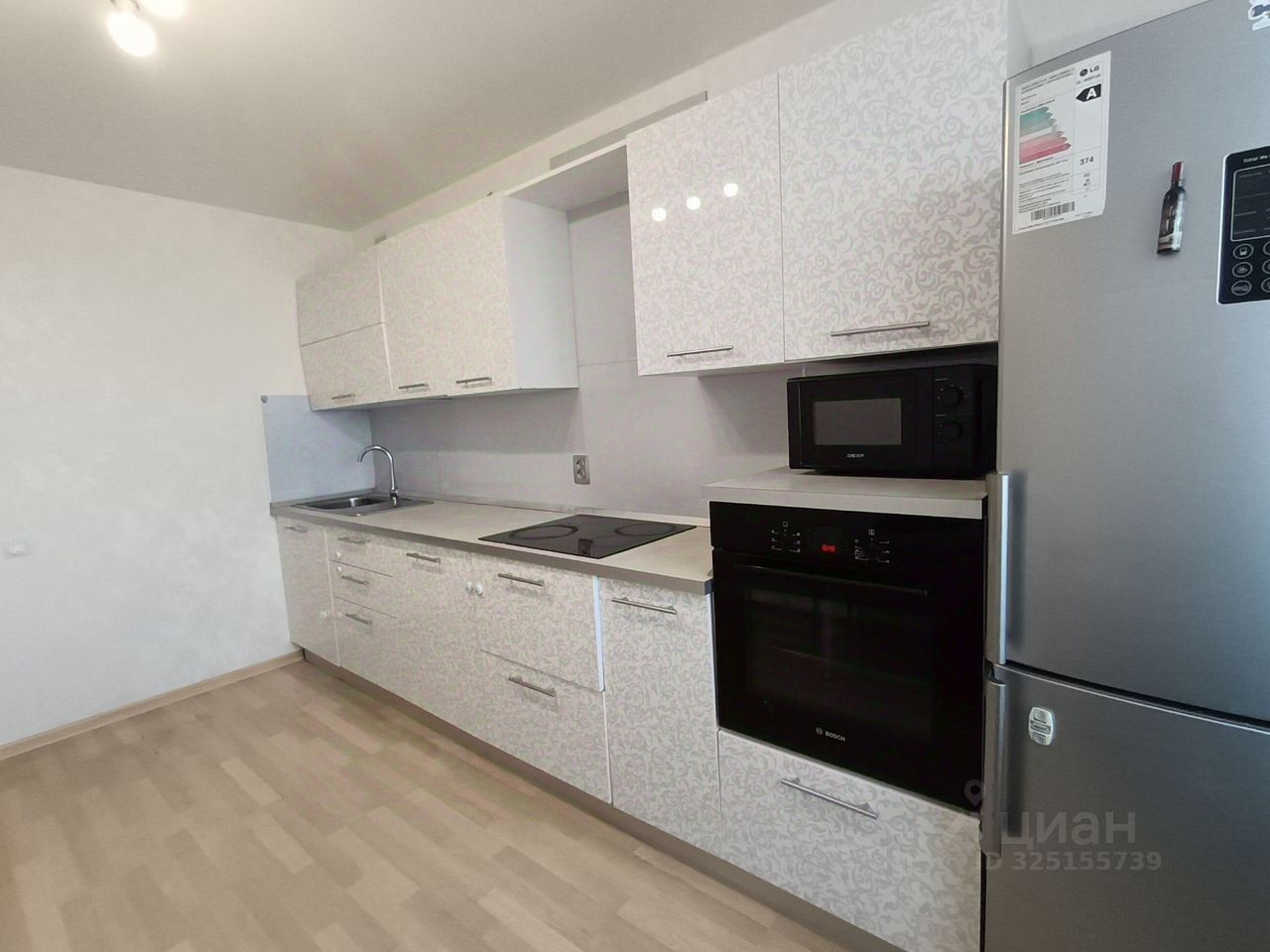 Срочная продажа! Предлагается к продаже двухкомнатная евро-студия площадью 43,8 кв.м с изолированной спальней и совмещенной гостиной с кухонной зоной. В квартире выполнен качественный дизайнерский ремонт, готовый для комфортного проживания. В отделке использованы практичные материалы: натяжные потолки, плитка ПВХ в спальне, линолеум в жилых зонах и керамогранит в совмещенной ванной комнате. Кухонный гарнитур в стильном темно-сером цвете комплектуется встроенной техникой премиум-класса: духовым шкафом, индукционной плитой и посудомоечной машиной Bosch. Дополняют интерьер современный зеркальный кондиционер, вместительный холодильник с морозильной камерой и многофункциональная мебель, включая диван, стенку-горку и систему хранения. Организации пространства способствуют просторный шкаф-купе в прихожей, встроенный гардероб в спальне и дополнительный платяной шкаф на лоджии. Жилой комплекс имеет закрытую охраняемую территорию с благоустройством: спортивной и детской площадками, зоной для выгула собак, фонтаном с подсветкой и просторной открытой парковкой с возможностью приобретения подземного машиноместа. Инфраструктура района включает магазины, торговый центр, две школы, четыре детских сада, поликлинику и бассейн. В шаговой доступности находятся озеро, хоккейная площадка, футбольное поле и лесопарковая зона. Транспортная доступность обеспечена развитой сетью общественного транспорта. Квартира свободна от обременений, один собственник. Дополнительно оплачивается комиссия с покупателя. Код пользователя: 182120 Номер в базе: 10310104