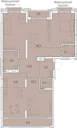 44 м2
