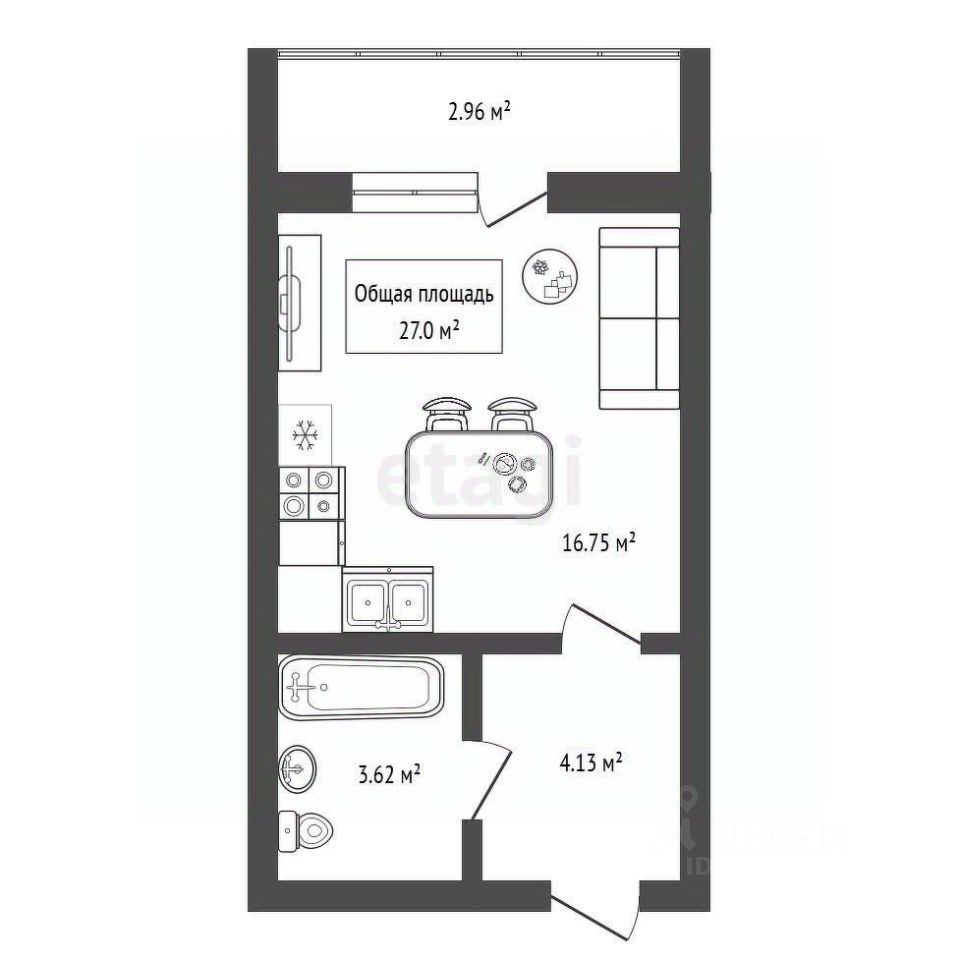 27 м² · Этаж 15 из 17