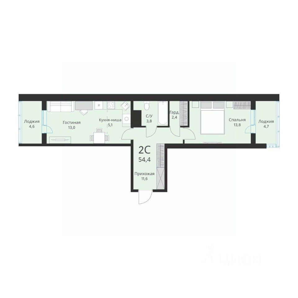 54 м² · Этаж 13 из 15