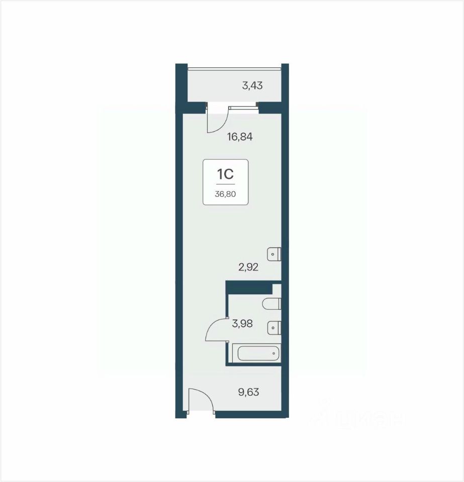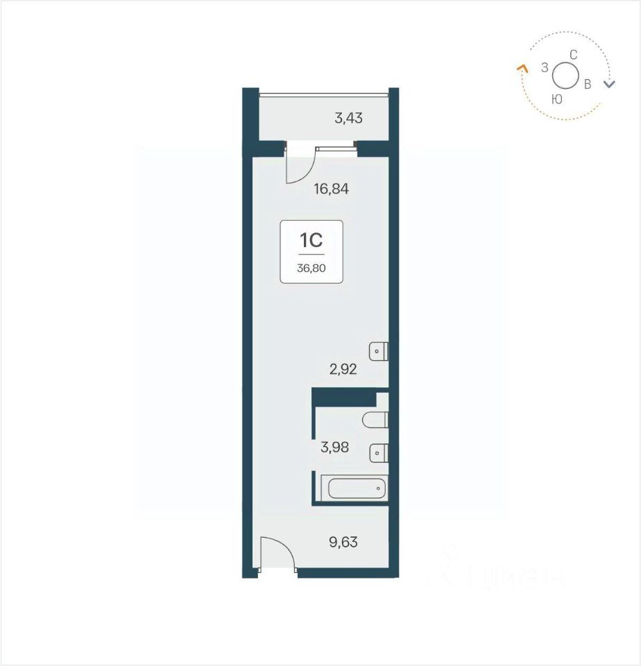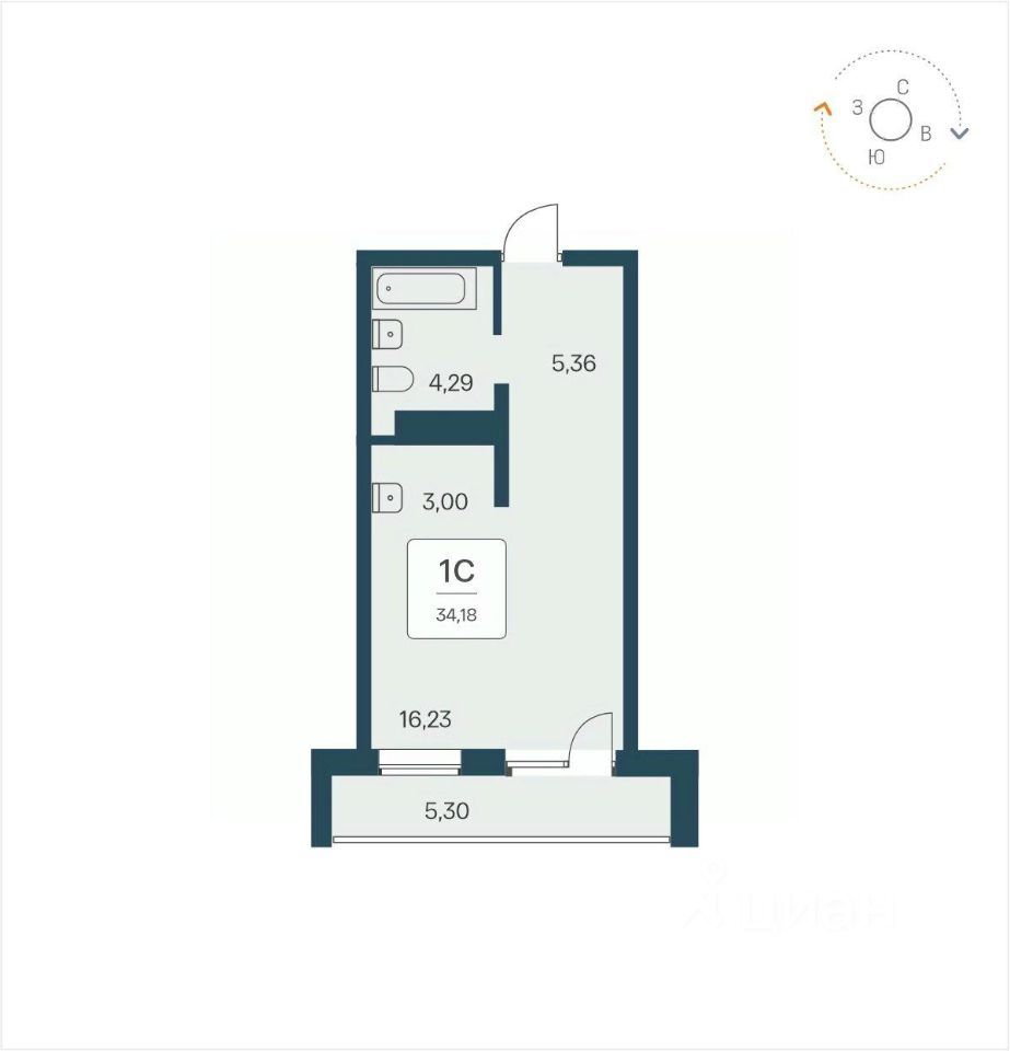 34 м² · Этаж 13 из 26