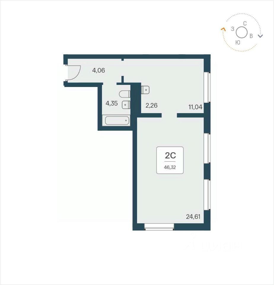 46 м² · Этаж 16 из 26
