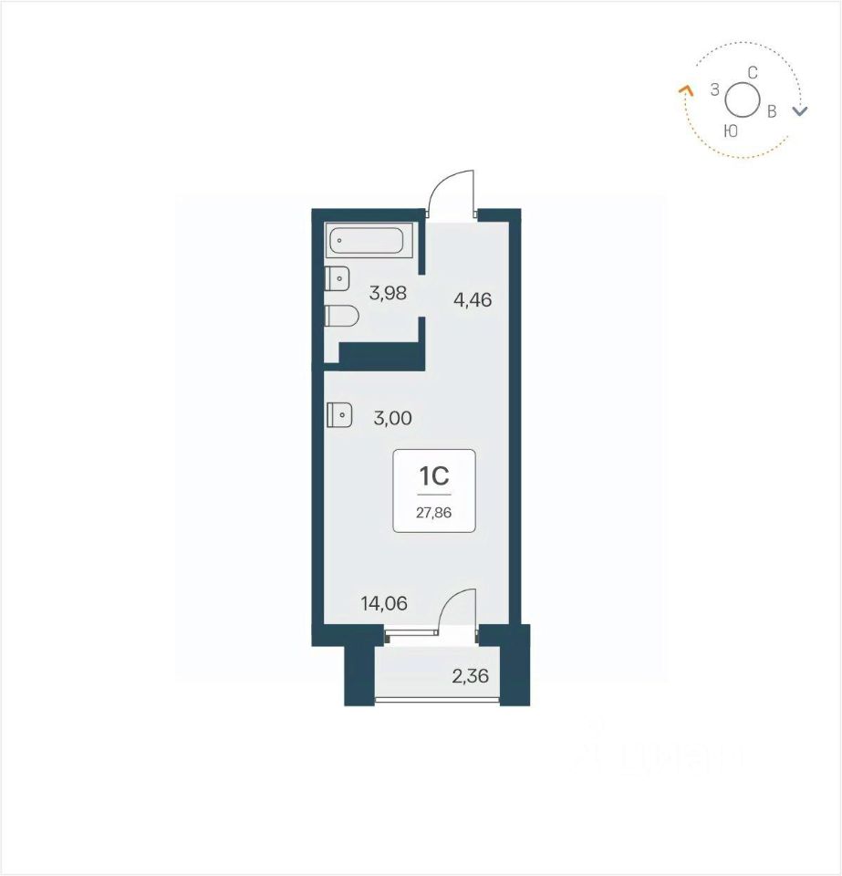 52 м² · Этаж 14 из 26