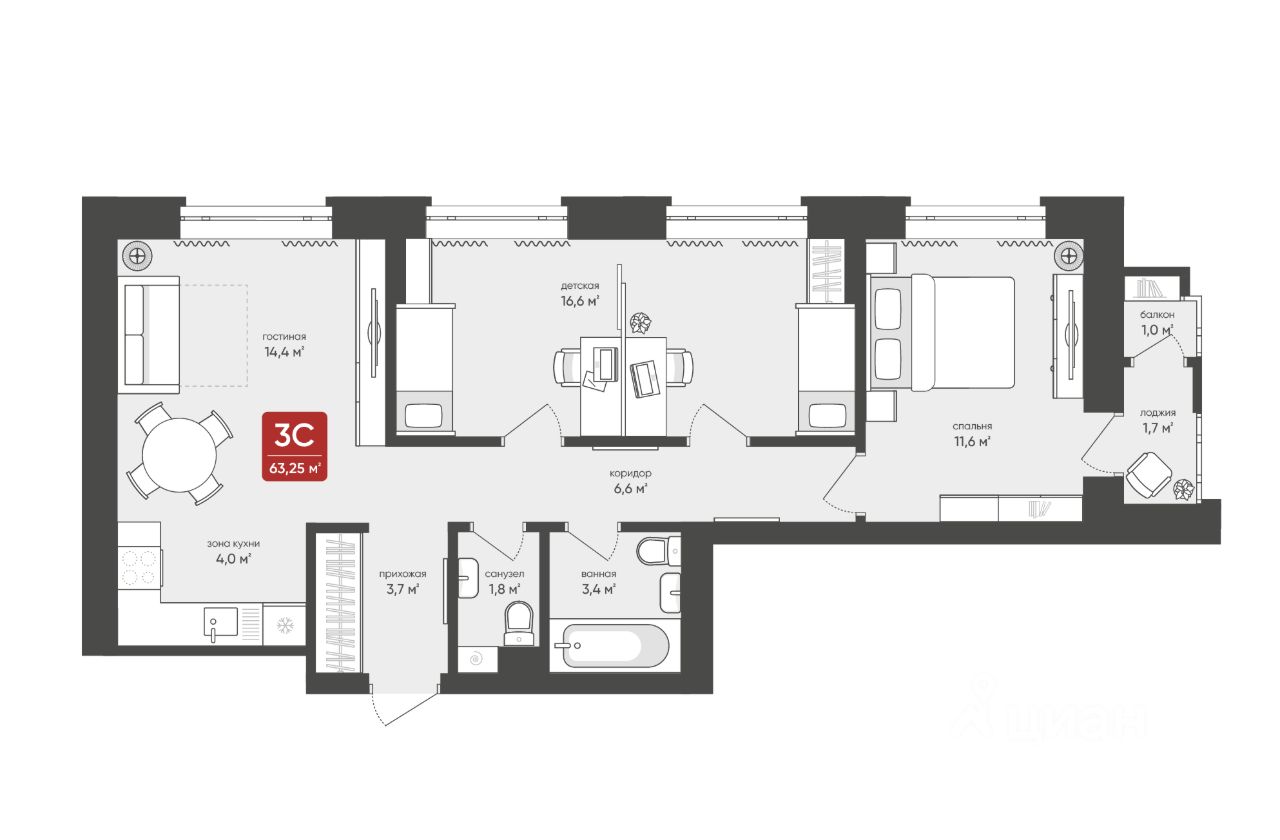63 м² · Этаж 5 из 17