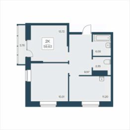 Продаётся 2-комнатная квартира в строящемся доме (Дом 1), срок сдачи: II-кв. 2026, общей площадью 59.63 кв.м., на 17 этаже. Новый жилой комплекс ''Расцветай на Дуси Ковальчук'' от Группы компаний ''Расцветай'' расположен в Заельцовском районе Новосибирска на ул. Дуси Ковальчук.