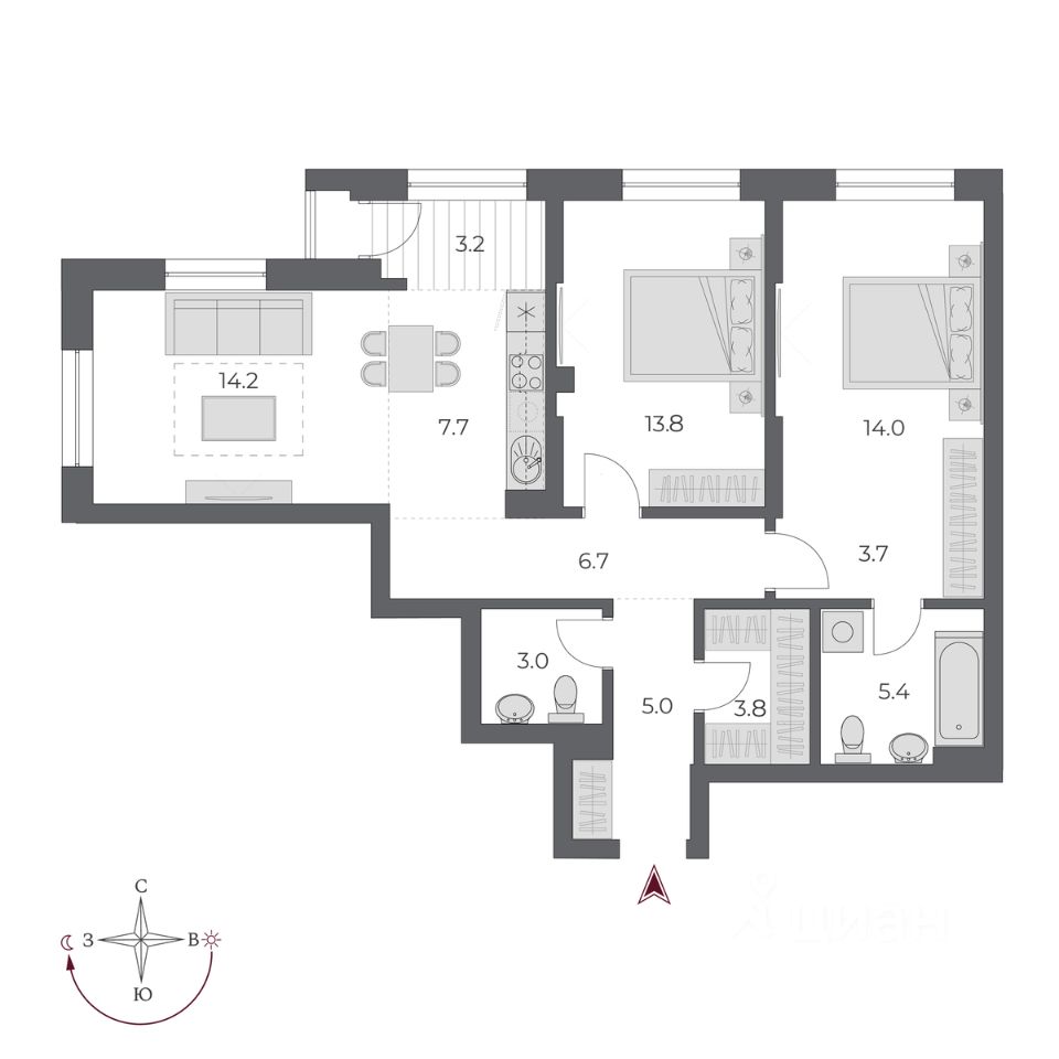 54 м² · Этаж 12 из 24