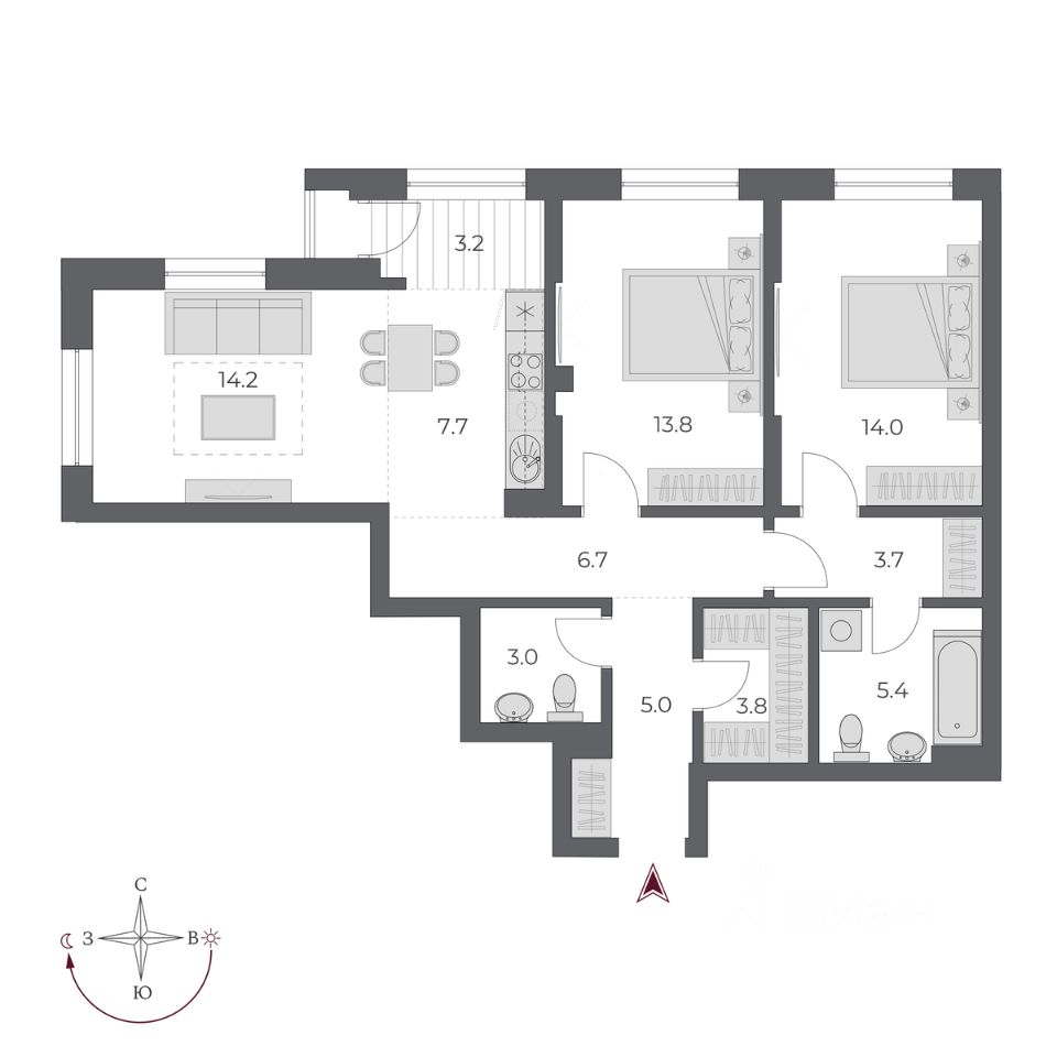 56 м² · Этаж 3 из 24