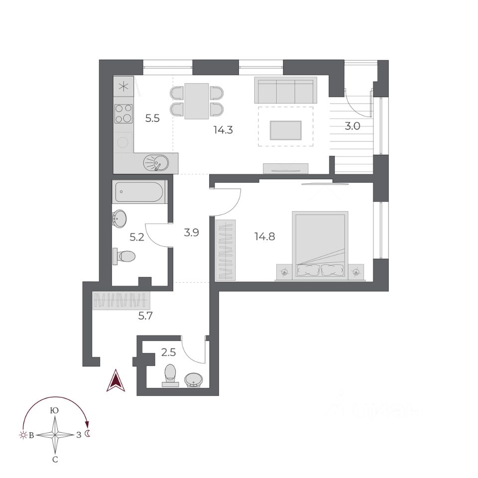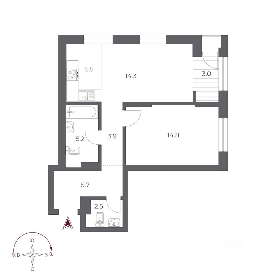 55 м² · Этаж 5 из 24