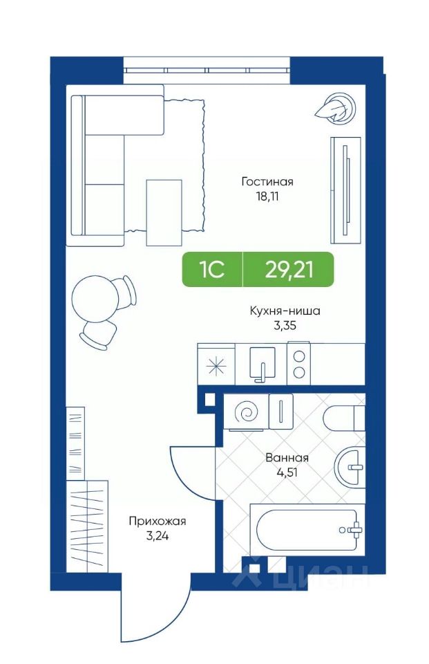 29 м² · Этаж 11 из 22