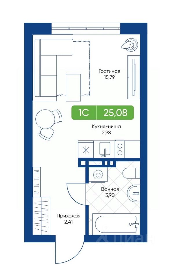 25 м² · Этаж 15 из 22