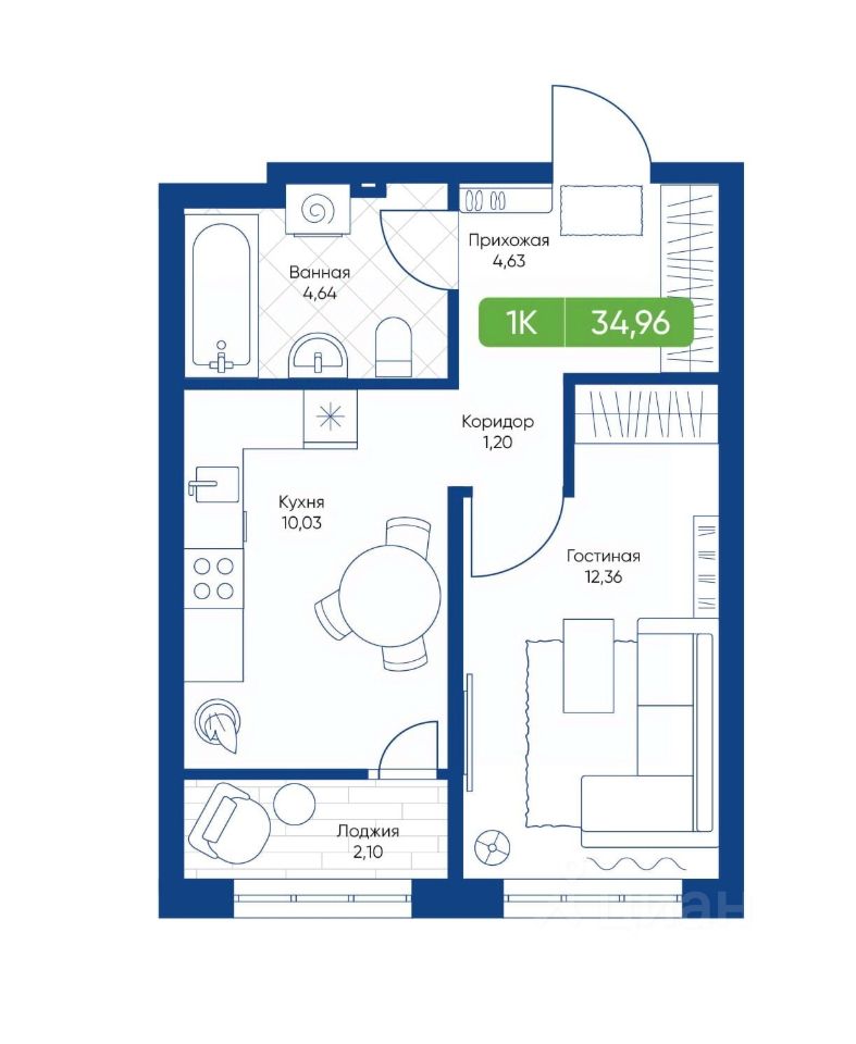 34 м² · Этаж 19 из 22