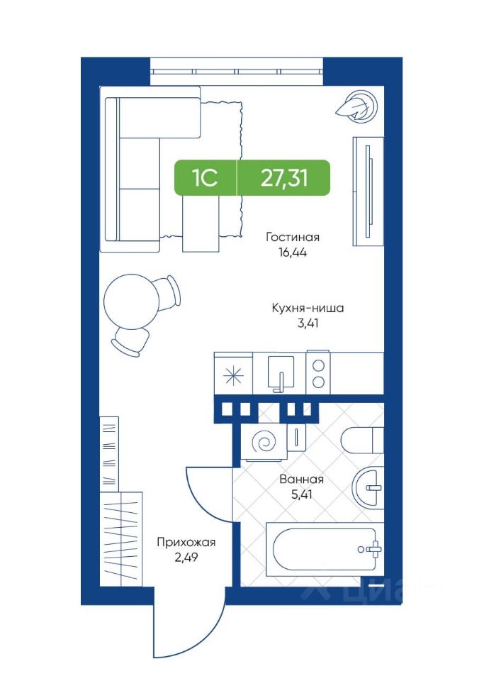 27 м² · Этаж 21 из 22