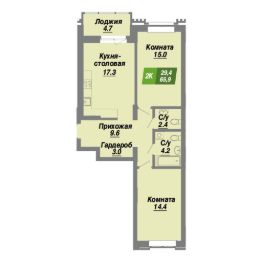 Продаётся 2-комнатная квартира в строящемся доме (БС А1-А4), срок сдачи: III-кв. 2027, общей площадью 65.9 кв.м., на 8 этаже. Новый жилой комплекс ''Калининский квартал'' от Группы компаний ''Сибмонтажспецстрой'' расположен в Калининском районе Новосибирска на ул. Славянская.