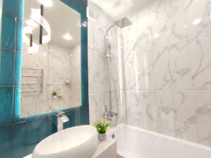 Продается эффектная большая однокомнатная квартира с дизайнерским ремонтом (фактически двушка-студия)! Фото реальные и абсолютно соответствуют действительности. В квартире недавно завершён ремонт, все новое и никто не жил + новая мебель и техника, а значит, можно заехать и жить сразу!Квартира концептуальная, с эффектными цветовыми акцентами. В квартире:- Стильные люстры и светильники - основное освещение+ дополнительные подсветки в каждой комнате.- Продуманная емкая система хранения: •Отдельно выделена большая гардеробная комната, оборудованная системой хранения. Есть возможность добавить дополнительные стеллажи. •Дополнительный встроенный шкаф-купе в потолок с системой хранения. - В комнате:- Продуманное зонирование: комната разделена подвесной перегородкой и эффектными цветовыми акцентами на 2 помещения спальня и зал.- Установлена ТВ тумба.- Качественные моющиеся обои во всей квартире.- Напольное покрытие - качественный ламинат 33 класс.- Современный белый плинтус из дюрополистерола.- В квартире установлено достаточное количество розеток.- В квартире смонтирована мощная входная дверь и стильные межкомнатные двери с магнитной фурнитурой. - Оконные откосы выполнены из керамогранита - практичное, стильное решение.В кухне:- Планировка кухня-гостиная. Выделено место для дивана и ТВ зоны.-Качественный вместительный кухонный гарнитур, фасады МДФ с противогрязевым покрытием последнего поколения.- Каменная мойка и качественная сантехника.- Фартук из широкоформатного керамогранита 120*60.-Фурнитура -петли с доводчиками.- Бесконтактная подсветка кухни.- Встроенная новая бытовая техника: современная полновстраеваемая вытяжка и варочная поверхность.- Модный круглый стол + стулья велюр. В ванной и туалете:-Современная сантехника: инсталляция, безободковый унитаз, раковина-чаша, высокий смеситель-водопад, современная душевая стойка, гигиенический душ. Электрический полотенцесушитель скрытого монтажа. -Запилы всех углов под 45 градусов.- В качестве акцента в ванной - большое зеркало с подсветкой и декоративным светильником. Квартира яркая, стильная, заряженная на позитив и комфортную жизнь! Окна выходят на юго-запад. Квартира без обременений и маткапов, 1 взрослый собственник, альтернативный вариант не нужен.Новым владельцам остаётся всё, что вы видите на фото, кроме ряда аксессуаров.Преимущества района , транспортной развязки очевидны: до метро 20 минут + остановка транспорта рядом. Детские сады, школы, поликлиники, магазины - всё рядом. ВНИМАНИЮ АГЕНТОВ! С УДОВОЛЬСТВИЕМ ПОКАЖУ КВАРТИРУ И ПОСОТРУДНИЧАЮ С ВАМИ ПРИ НАЛИЧИИ У ВАС ПОКУПАТЕЛЯ! Параллельную рекламу квартиры ЗАПРЕЩАЮ.Приглашаю на просмотр и покупку!