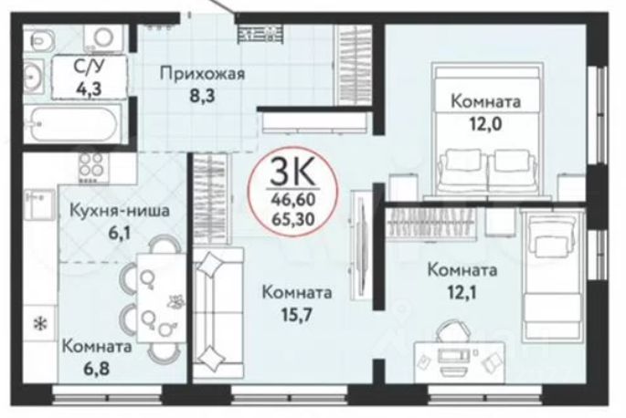 Трехкомнатные
