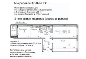Продаётся 3-комнатная квартира в сданном доме (Фламинго, 17 (поз. 12)), срок сдачи: III-кв. 2018, общей площадью 69.4 кв.м., на 2 этаже. Расположение, транспортная доступность Жилой комплекс ''Фламинго'' расположен в поселкеЭлитный Новосибирского района, на бывших сельскохозяйственных угодьях площадью 45 га, примыкающих к Кировскому району Новосибирска. Микрорайон считается экологически благоприятным пригородом, окруженным кварталами частных домов: по соседству находятся дачныекомплексы и коттеджные поселки ''Березки'' и ''Элитный''. С северной и южной стороны участок застройки граничит с лесополосами. шаговой доступности находится несколько остановок общественного транспорта: около двадцати линий автобусов, маршрутных такси и троллейбусов. Транспортные преимущества для владельцев автомобилей обеспечивает быстрый выезд на Ордынское и Советское шоссе (с новыми развязками), Бугринский мост и Чуйский тракт. Путь на машине до международного аэропорта Толмачево, главного железнодорожного вокзала или центра Новосибирска займет около сорока минут, до автовокзала - полчаса, до площади Карла Маркса (центр левобережья) - двадцать минут. Инфраструктура В микрорайоне Фламинго запланировано строительство спортивного комплекса ''Магис-Фламинго'' с бассейном и лыжно-тренировочной базой. В детском саду предусмотрено 330 мест, в общеобразовательной школе - 1100 мест. В поселке есть поликлиника на 300 посещений в смену, Дом культуры (более 40 кружков и секций), две общеобразовательные школы, колледж, несколько детских садов, библиотека. В шаговой доступности расположена ледовая арена, стадион, городок аттракционов, кинотеатр, сквер, несколько продуктовых магазинов, кафе, аптек, торговый комплекс и рынок. На общественном транспорте можно доехать до гипермаркета ''Метро'', площади Маркса с крупными торговыми комплексами и многочисленными объектами инфраструктуры, а также до центральных районов Новосибирска. Надежность застройщика Масштабный проект реализует алтайская компания ''Жилищная инициатива'', основанная в 1998 году в Барнауле. Комплексное освоение земель - приоритетное направление в девелоперских проектах компании. В активе застройщика жилые комплексы в Барнауле: ''Рубин'', ''Дружный'', ''Дмитровские горки'', ''Лазурный''. В 2008 году ''Жилищная инициатива'' вышла на рынок Новосибирска, открыв дочернее подразделение - ООО ''Новосибирский квартал''. Глава обоих предприятий - Ю.А. Гатилов, почетный строитель России. За 20 лет было введено в эксплуатацию более 100 домов, штат компании составляет около 700 человек. Архитектура Жилой комплекс ''Фламинго'' - это 40 пятиэтажных кирпичных и панельных домов и два гаражных комплекса на территории 44,8 га. Всего в комплексе будет представлено 3995 однокомнатных, двухкомнатных и трехкомнатных квартир площадью от 33 до 110 кв. м, расположенных на всех пяти этажах здания. Все квартиры в ЖК ''Фламинго'' передаются покупателям с готовым ремонтом под ключ. Фасады выполнены в светло-серых, бежевых и коричневых оттенках. Наружные стены панельн
