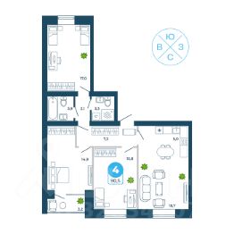 Продаётся 4-комнатная квартира в строящемся доме (1 этап), срок сдачи: IV-кв. 2027, общей площадью 90.5 кв.м., на 3 этаже. Новый жилой комплекс ''Атмосфера'' от Специализированного застройщика ''Атмосфера'' расположен по адресу: Новосибирская обл., г. Обь, ул. Муромская.