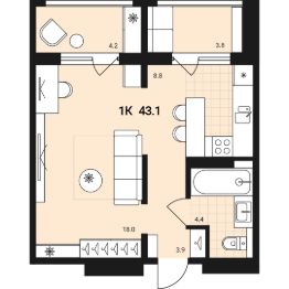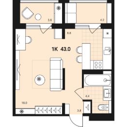 43 м2