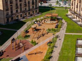 ''Альпийский квартал'' — большой комплекс малоэтажных домов в стиле ''шале'', спроектированный по образцу европеиских городков района Альп. Квартальная застройка домов классической кирпичной кладки. На каждые 6 домов предусмотрен отдельный двор. На этаже не более 8 квартир. Разнообразные планировки: от больших студии 30 м2 до семейных квартир с террасой или вторым ярусом. Здесь есть все для счастья: живописная природа с лесом, озером и цветущими летом лугами игровой городок из экологичных материалов: качели-гнезда, горки, веревочные препятствия и др. зоны воркаута и площадки для игр в баскетбол и футбол беговая дорожка по периметру квартала закрытая территория с охраной и видеонаблюдением ландшафтное озеленение двор ''без машин'' Всего 23 км до пл. Калинина, и развитая инфраструктура жилого района ''Светлый'' в 10 минутах ходьбы: школа, детский сад, магазины, фитнес-клуб и автобусная остановка. Торопитесь, на старте продаж самые низкие цены, записывайтесь на экскурсии! Альпийский квартал - малоэтажные кирпичные дома в стиле ''Шале'', в 25 мин. от пл. Калинина по широкой четырехполосной магистрали. Территория закрыта от посторонних, здесь предусмотрены детские и спортивные площадки из экоматериалов, огромный паркинг, прогулочные зоны и аллеи. В продаже студии, двух-, трех- и четырехкомнатные планировки, а также квартиры с террасой на крыше, первых этажах и вторым ярусом, откуда открываются панорамные виды на лес.''Ощутите уникальность локации - Природный лес, озера и цветущие в летнее время лугаЗдесь нет эффекта перенаселенности, ведь на каждые 6 домов отдельный двор, а на этаже не более 8 квартир. Принцип двор без машин гарантирует тишину, экологичность и безопасность - нет проезжающих вдоль детских площадок автомобилей и запаха выхлопных газов. А просторная зона паркинга расположится по периметру домов, и будет рассчитывать два машино-места на семью. Территория двора будет находиться под охраной, видеонаблюдением и закрыта от посторонних.Для активных и спортивных жителей будет предусмотрена специальная дорожка для пробежек по периметру комплекса.Для малышей построят игровой городок из безопасных экологичных материалов, также на территории появятся зоны воркаута и площадки для игры в баскетбол и футбол. ''Функциональные студии без лишних перегородок выглядят просторными и наполненными светом. Такое пространство может стать комфортным для дистанционной или творческой работы.Успейте выбрать свою квартиру в ''Альпийском квартале''!
