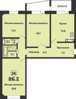Квартира светлая, комфортная и уютная!!!Планировка функциональная.Площадь квартиры 81,9 кв.м., плюс 2 лоджии - площадь 4,5 кв.м и 4,3 кв.м.Квартира с качественным и современным ремонтом:современная входная дверьокна пластиковыеобои светлого тоналоджии остеклены, сделана внутренняя отделка, стены обшиты ламинатом, на полу плитка ПВХ. Одна из лоджий утеплена (установлены пластиковые стеклопакеты и теплый пол, конвектор отопления, проведен свет, розетки). Оборудовано место для хранения колес автомобиля.натяжной потолок во всей квартирев ванной комнате и санузле на стенах кафель до потолкана полу качественный линолеум.Плюсы данной квартиры:сделан ремонт во всей квартиревходит в стоимость квартиры следующая мебель и техника.Кухня-гостиная: встроенный кухонный гарнитур со встроенной техникой (микроволновая печь, духовой шкаф, индукционная варочная панель) столешница с раковенной (натуральный камень). Диван раскадной, телевизор, полка под телевизор, шторы, осветительные приборы. Детская большая: комод, детская кровать (машина), кровать, шкаф, шведская стенка,, письменный стол и подвесная полка под телевизор. Большая комната: шкаф, кровать с матрасом (подъемный механизм), прикроватные тумбочки,подвесная тумба под телевизор .Комната малая: трильяжный столик, шкаф. Ванная комната: тумба с раковиной , столешница (натуральный камень), все подвесные шкафы и напольные. Коридор: шкаф.Удачное месторасположение дома. Рядом вся инфраструктура: детские сады, средние образовательные школы в пешей доступности, продуктовые магазины в шаговой доступности (Монетка, Пятерочка, Магнит), парикмахерские, аптеки, бассейн, ТЦ Голден Парк, кинотеатр, развивающие секции для детей.парковочных мест всегда достаточно. также есть многоуровневая парковка.детская площадка и спортивная площадкаДо станции МЕТРО Зальцовская - 30 мин на машине или на общественном транспорте.До остановки общественного транспорта 5 минут.Квартира готова к проживанию.Чистая продажа, 1 взрослый собственник, быстрый выход на сделку.По данной квартире обременение банка ВТБ, материнский капитал не использовался при покупке. В собственности 1 год, покупали у застройщикаПоказ по договоренности.Понравилась? Звоните!Дополнительно оплачивается комиссия с покупателя, комиссии с АН - нет.Агентство является действующим членом СРО Национальное Объединение Агентств Недвижимости. Деятельность Агентства застрахована на 100 000 000 рублей в САО ''РЕСО ГАРАНТИЯ''