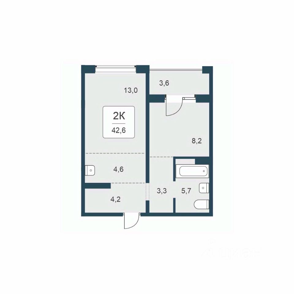 ''В продаже 2-комнатная квартира, площадью 42.6, под номером 118 в новом Доме ЖК ''Квартал Цветной бульвар''.'' Квартал возводится в Кировском районе на ул. Сибиряков-Гвардейцев, в 10 минутах от СТЦ Мега. В окружении квартала две лесные аллеи, с дорожками для прогулок. В шаговой доступности, несколько зеленых скверов, большой парк, 7 школ, детские сады и крупные продуктовые гипермаркеты.