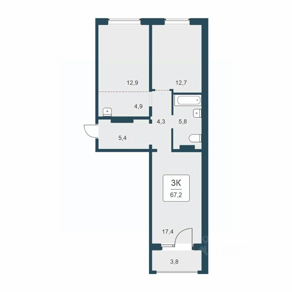 67 м² · Этаж 12 из 17