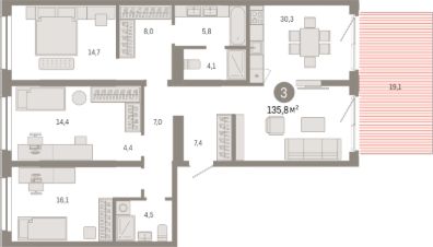 Продаётся 4-комнатная квартира в строящемся доме (Дом 49), срок сдачи: IV-кв. 2026, общей площадью 136.9 кв.м., на 15 этаже. Микрорайон ''Европейский берег'' расположен на правом берегу Оки, между Бугринским и Октябрьским мостами, в пятнадцати минутах езды от центра Новосибирска. Прямой доступ на Большевистскую улицу (магистраль Р-256 ''Чуйский тракт'') обеспечивает удобный и быстрый путь в любой район города. По трассе можно совершить путешествие через Алтай до границы с Монголией.Внутри жилого комплекса построен детский сад на 320 мест, работают продуктовые магазины, кафе, пекарня, аптека, медицинская клиника. Запланировано открытие общеобразовательной школы со стадионом и второго детского сада. Первые этажи отданы под офисы, сервисные службы, отделения банков, магазины, супермаркеты, салоны красоты, кафе и торговые площади всего будет порядка 80 заведений.Дворы, закрытые от автомобилей, превращены в ландшафтные парки с трехуровневым освещением тротуаров и проездов, игровыми и детскими площадками, брусчатыми пешеходными аллеями, скалодромом, полем для игры в стритбол и мини-футбол, зоной workout и площадками для выгула собак. Площадь озеленения составит более 4 га. Общая протяженность велодорожек превышает 4 км. На парковках установлены резиновые ограждающие столбы.Программа благоустройства предполагает строительство двухуровневой набережной с зонами отдыха, местами для барбекю, велосипедными дорожками и бесплатным wi-fi. Управляющая компания поддерживает чистоту на территории комплекса и в подъездах, обеспечивается видеонаблюдение и профессиональная охрана.Отделка в подъездах выполнена по дизайнерским проектам. Стеклянные входные группы и витражные окна наполняют вестибюли и холлы светом, а безбарьерная среда и сквозные проходы всем обеспечивают комфортное передвижение.