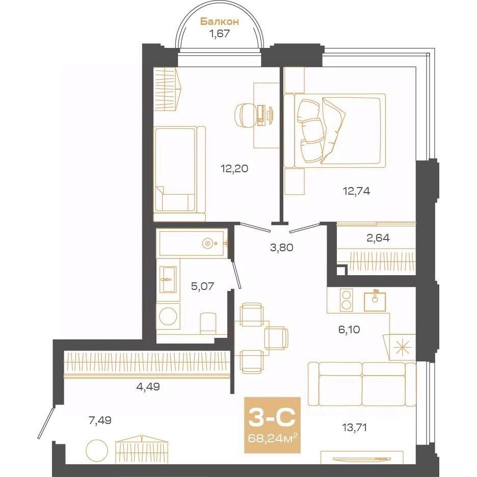 68 м² · Этаж 9 из 24