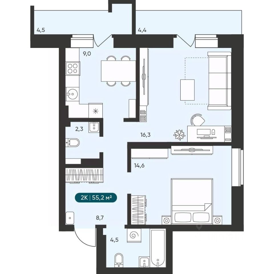 56 м² · Этаж 8 из 16