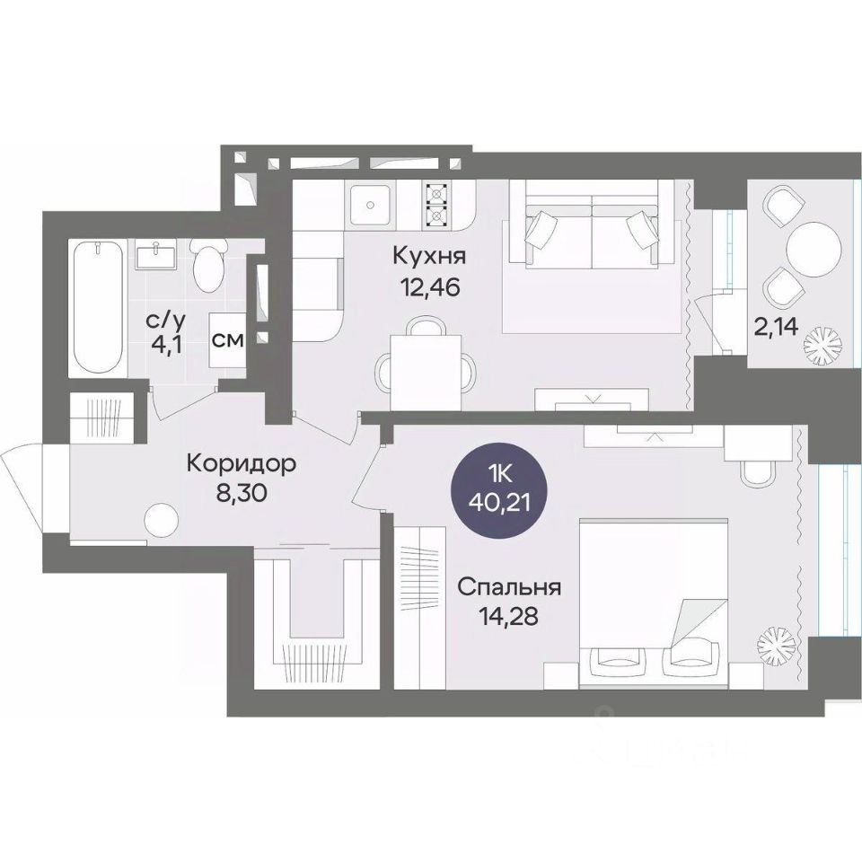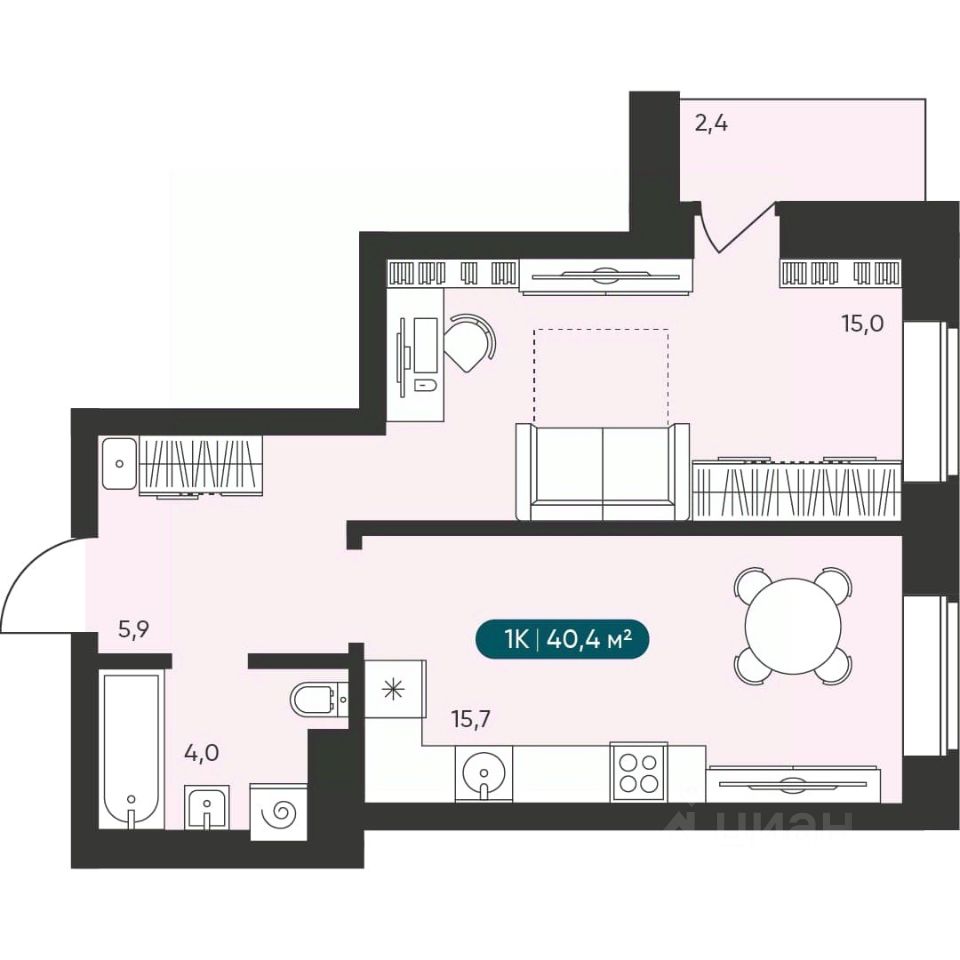 40 м² · Этаж 9 из 15